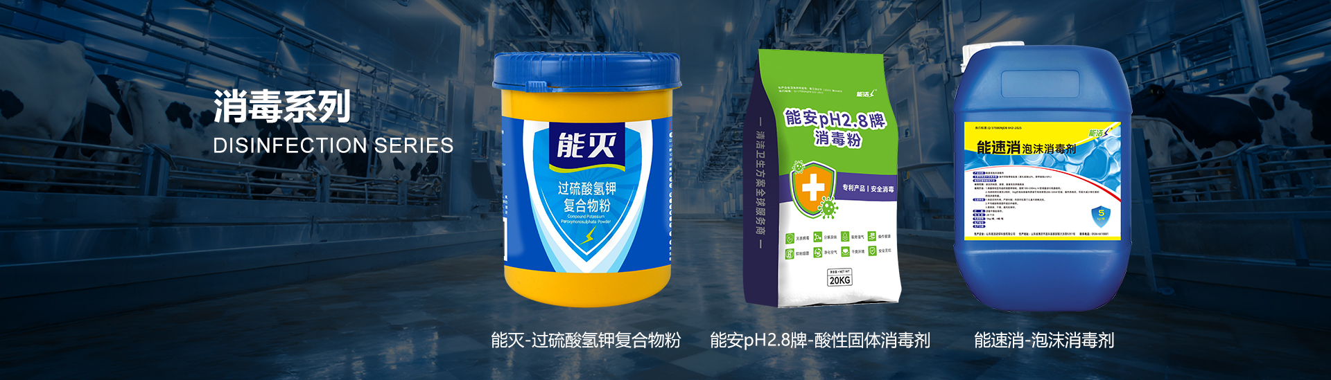 1:200能灭水溶液,用于舍前或畜牧场入口洗手盆消毒、脚踏盆消毒、设备消毒、饮水系统浸泡消毒。